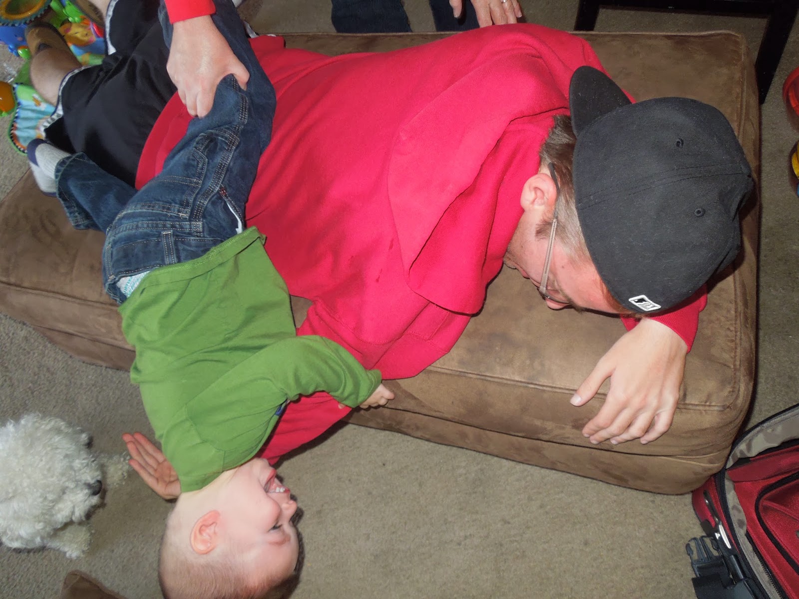 Jake can be quite the little stinker.  He is trying to figure out our limits as he grins at us when doing something he knows he's not allowed to do.  It's been a battle of wills at our apartment lately.  As difficult as he can be at times, he is the most fun little boy.  I LOVE his sense of fun and his squeal and giggles when he is uncontrollably happy.  His cheesy grin melts my heart, and I love his hugs and kisses more than I ever realized I could.